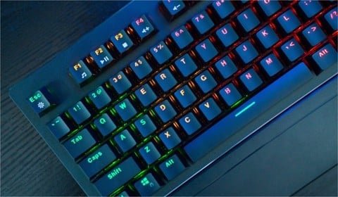 Cùng với đó là được hãng sản xuất sử dụng keycap được thiết kế khá cao theo công nghệ Doubleshot có 2 lớp, các kí tự được chạm khắc ở cả mặt trong và mặt ngoài để đèn LED có thể xuyên qua phím.