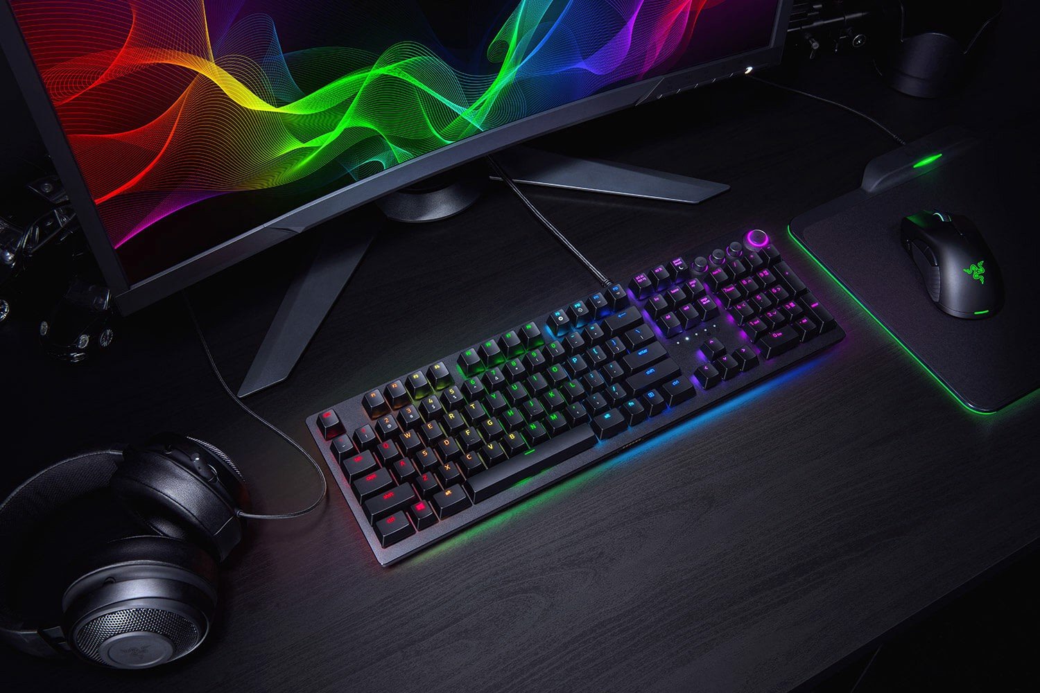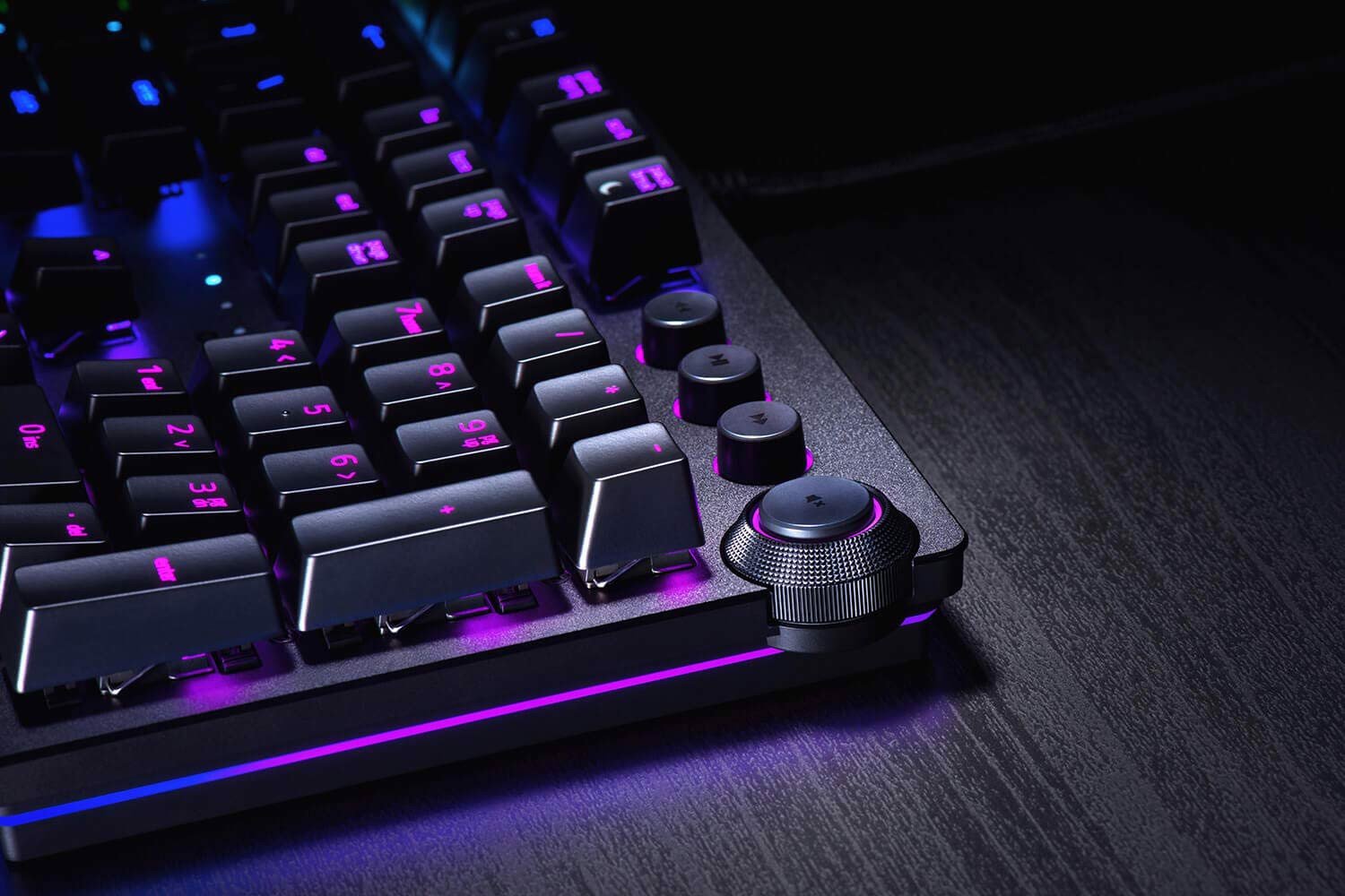Điều khiển bàn phím nhanh hơn rất nhiều. Một mặt số kỹ thuật số đa chức năng với ba phím đa phương tiện xúc giác cho phép bạn truy cập tức thì vào mọi thứ từ độ sáng đến âm lượng chỉ trong vài giây. Tất cả đều có thể lập trình và tùy chỉnh thông qua Synapse 3 — vì vậy bạn có thể đặt cấu hình ưa thích của mình ngay trong tầm tay.