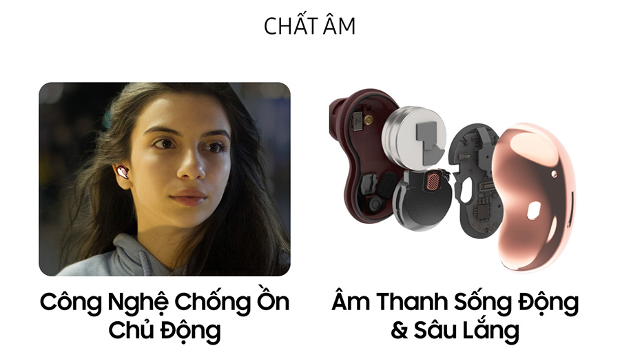 Lần đầu tiên, công nghệ Chống Chống Ồn Chủ Động (Active Noise Cancellation - ANC) dành cho tai nghe mở được tích hợp trên tai nghe Galaxy. Khử bỏ hiệu quả tiếng ồn nhưng không lấn át các âm thanh quan trọng như giọng nói hay thông báo, để bạn luôn lắng nghe kịp thời khi cần thiết. Đơn giản nhấn và giữ để bật và làm chủ âm thanh theo cách bạn muốn.